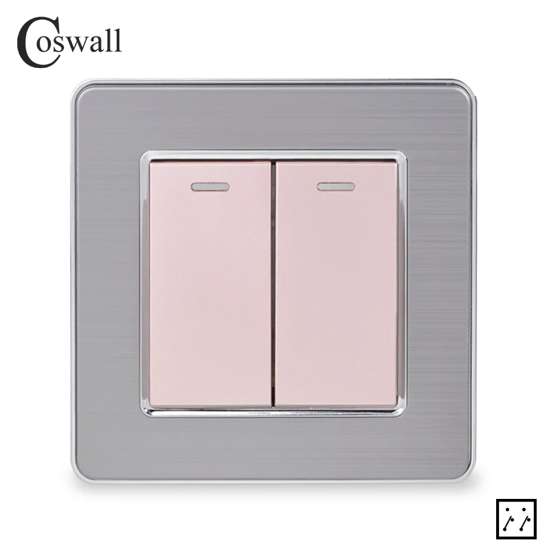 Панель из нержавеющей стали Coswall, 2 клавиши, 3 канала, переключатель промежуточного уровня, переключатель кроссовера, ВКЛ.ВЫКЛ., настенный выключатель света, серия 16A X2