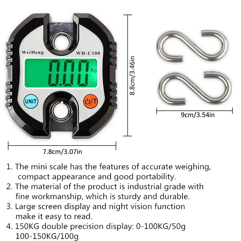 4. 150 кг двойной точный дисплей: 0-100 кг/50 г 100-150 кг/100 г, автоматическое преобразование точности согласно различному диапазону взвешивания