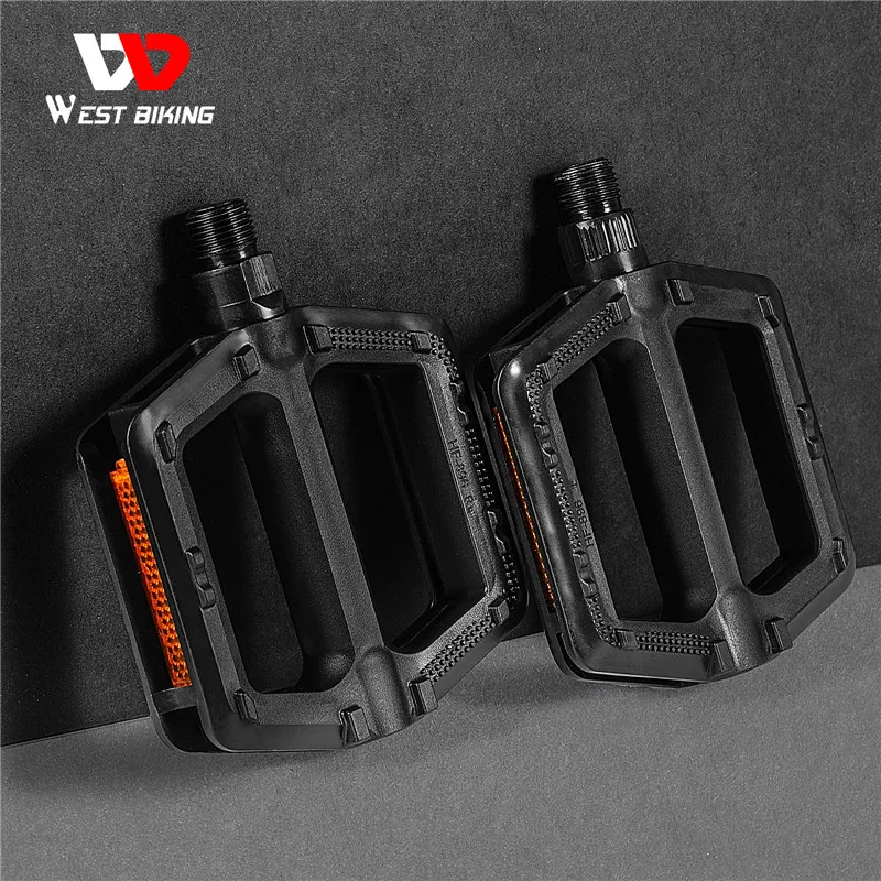 WEST BIKING велосипедные педали, сверхлегкие педали для горного велосипеда, пластиковые Нескользящие велосипедные педали с заклепками, велосипедные подшипники, велосипедные аксессуары