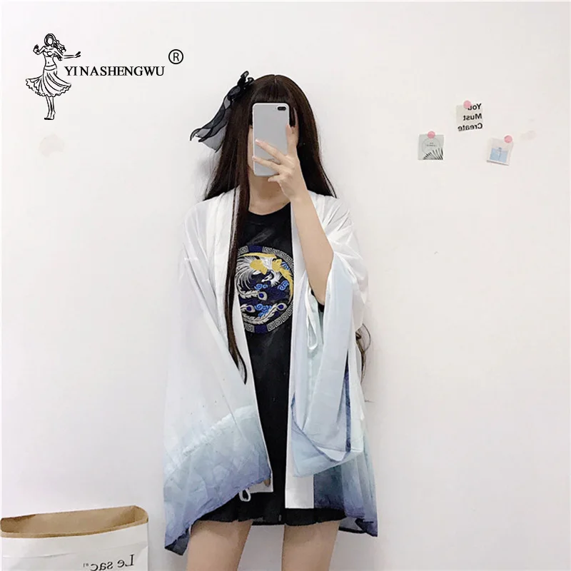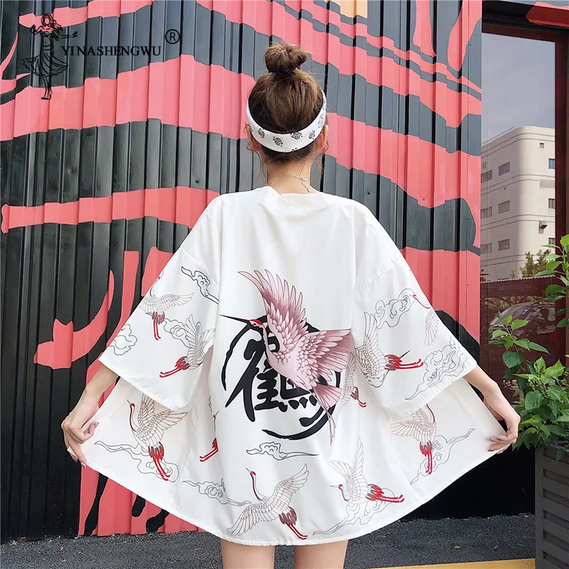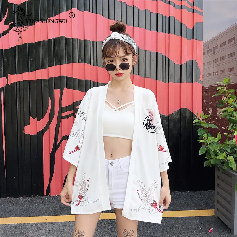 Женская блузка с ремнем Yukata, летняя, солнцезащитная, с принтом японских фанатов
