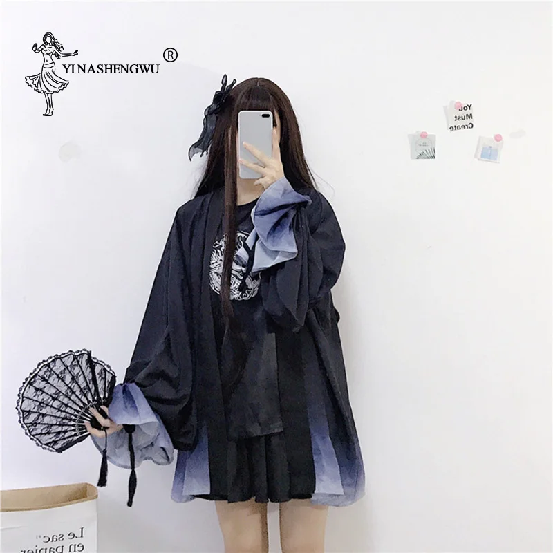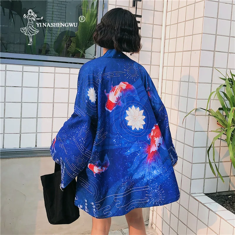 Yukata женская блузка с поясом Новая модная кимоно блузка японский веер принт Женская рубашка Летний солнцезащитный Топ японское кимоно для женщин