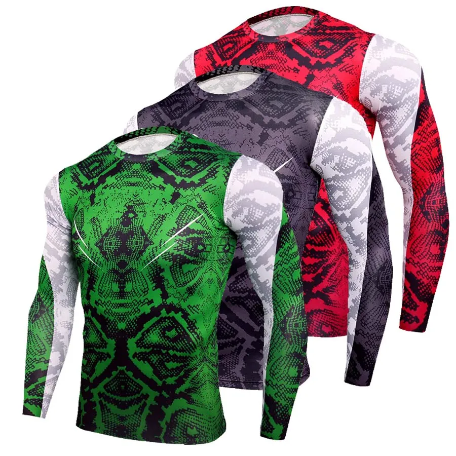 Мужская футболка с длинным рукавом, компрессионная футболка с 3D принтом, Спортивная футболка для занятий фитнесом, 2019