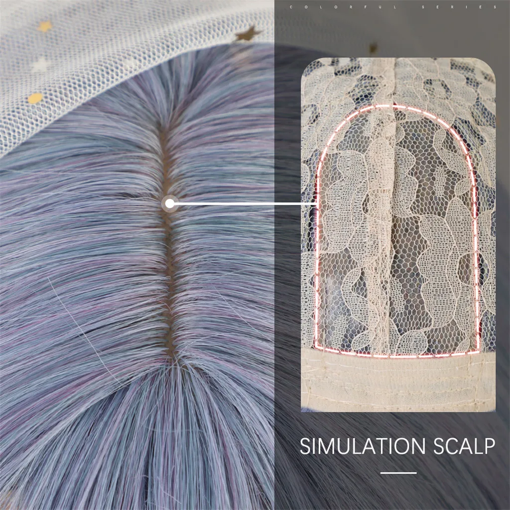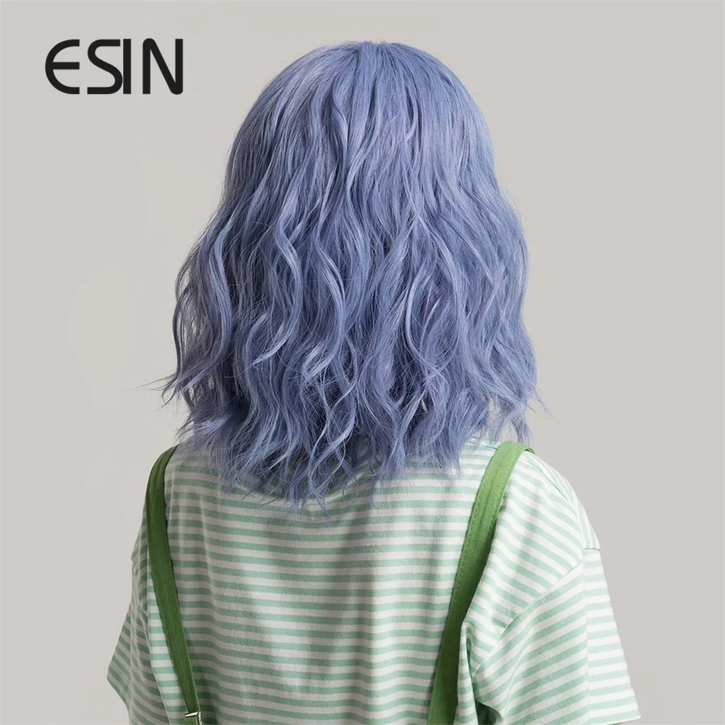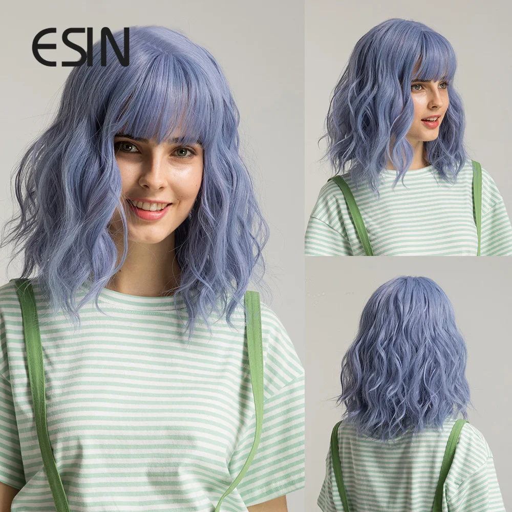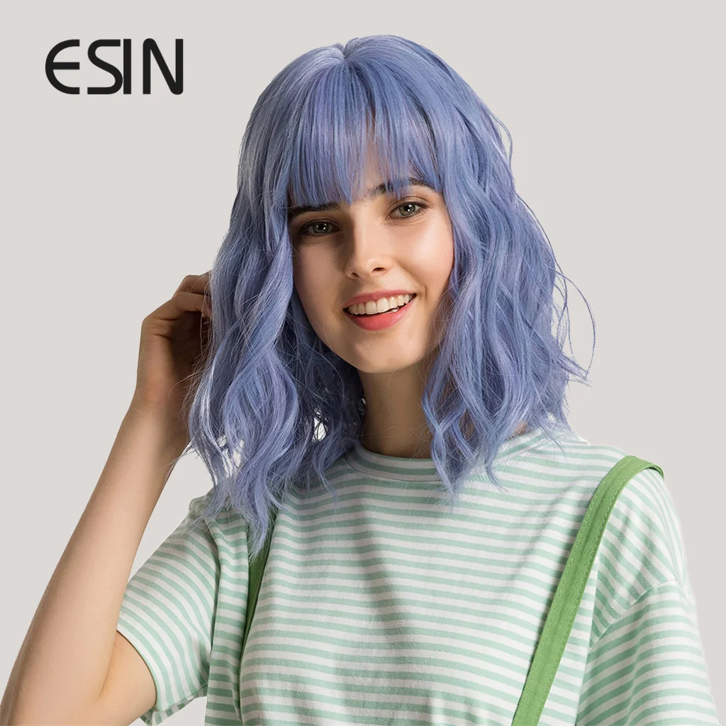 Синий синтетический парик ESIN, фиолетовые, средней длины, волнистые, с челкой, косплей, повседневные натуральные парики для женщин, термостойкие волосы