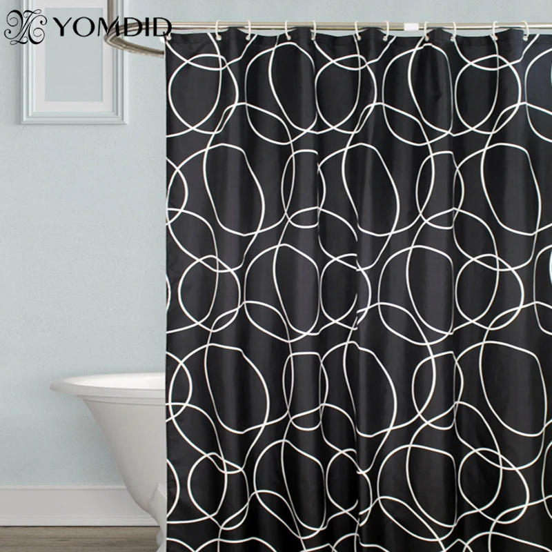 Черная занавеска для ванны YOMDID, занавеска для душа с белым кругом, водонепроницаемая утолщенная Полиэстеровая занавеска для ванны с 12 крючками