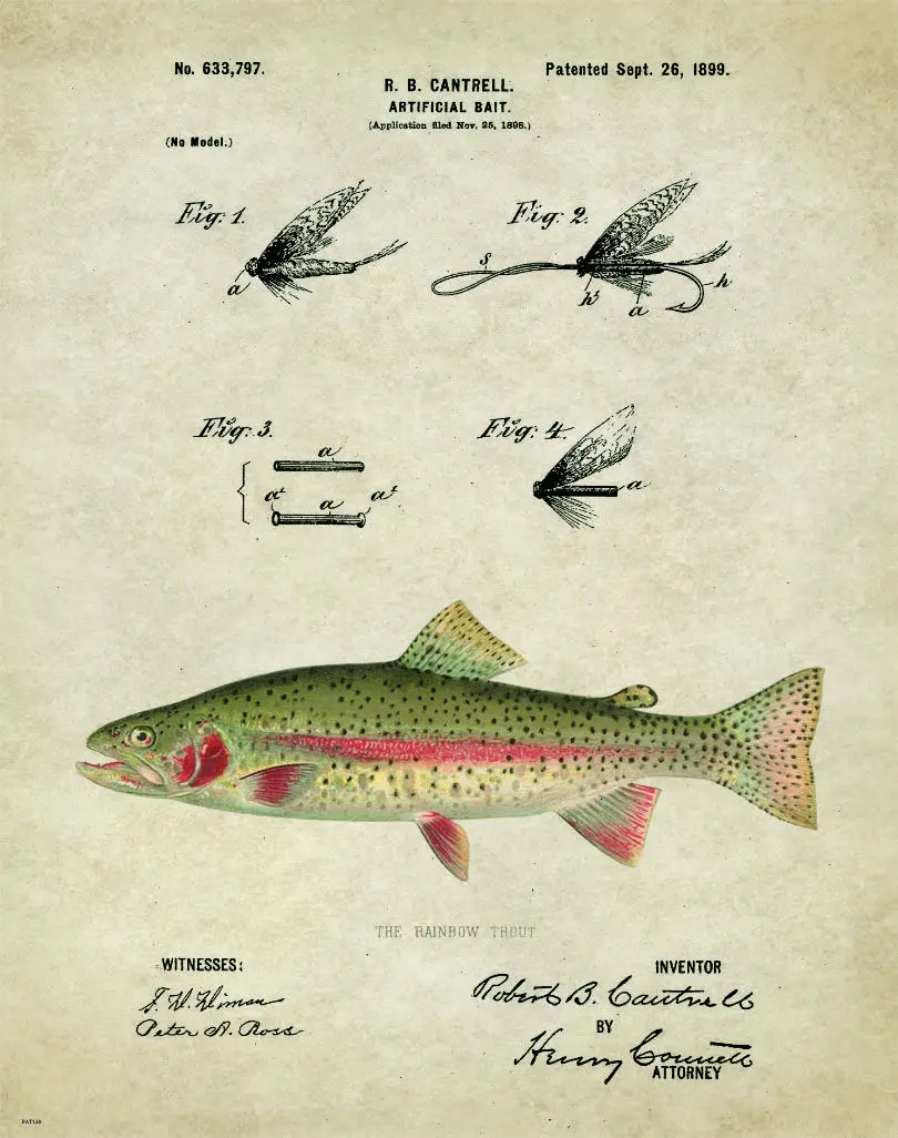 Рыболовная приманка, патент, форель, винтажные мухи, шелк, тканевый плакат искусство, украшение для спальни