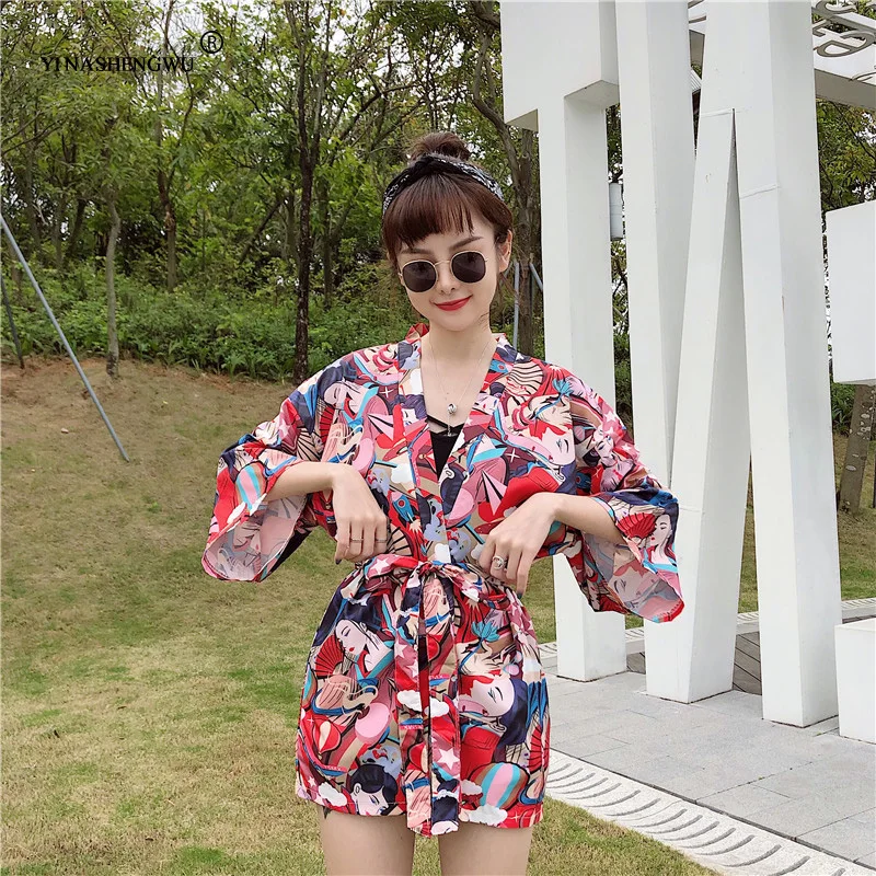 Кимоно женское в японском стиле, уличная одежда в стиле Харадзюку, кардиган, юката кимоно, гейши, японская азиатская рубашка с Оби, шифоновая куртка