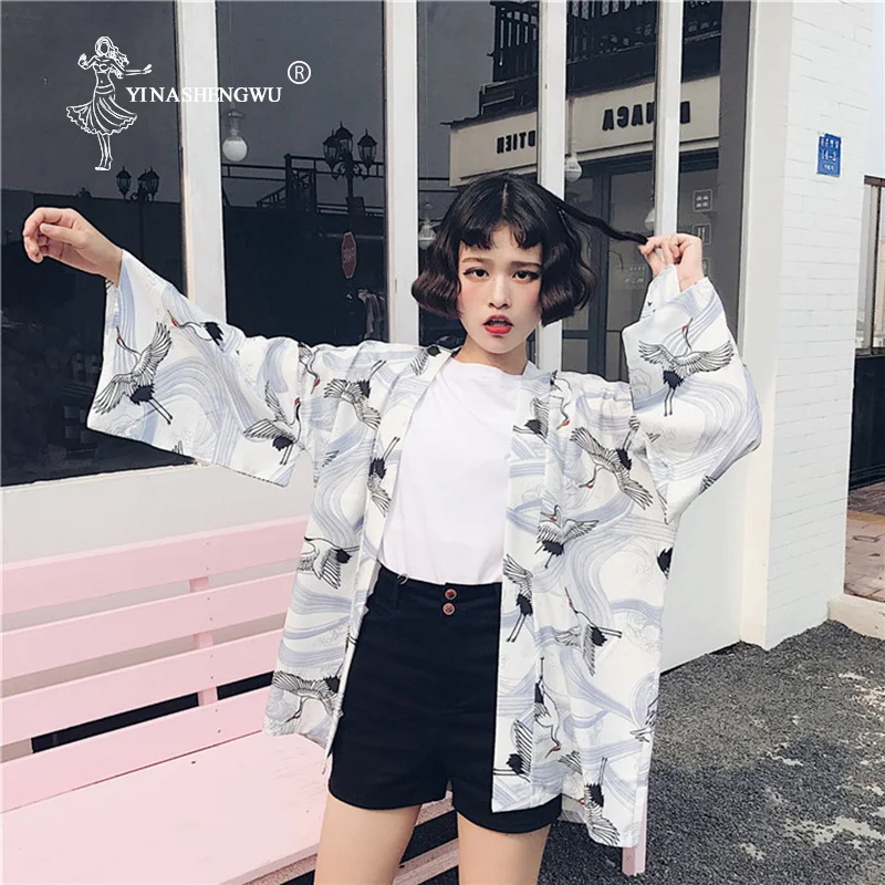 Харадзюку кимоно уличная одежда японское кимоно кардиган для женщин юката кимоно гейши Би японская азиатская рубашка шифоновая куртка