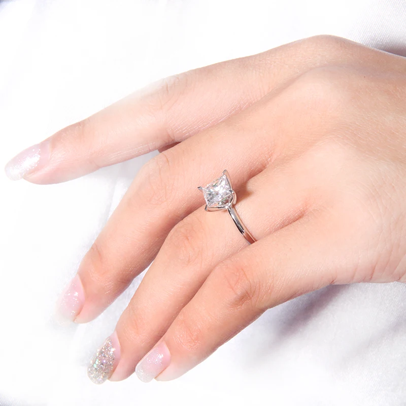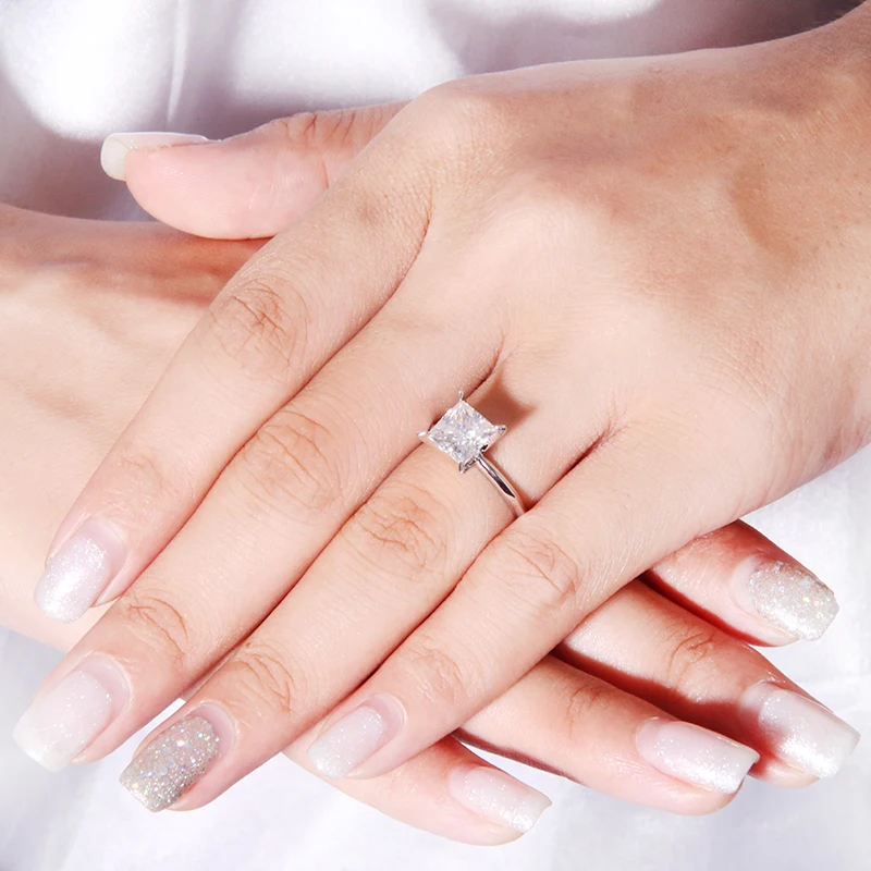 Женское Обручальное кольцо, обручальное кольцо с огранкой принцессы из чистого золота 3,0 карат 8 мм, 14 к, 585 пробы, сертифицированный Муассанит