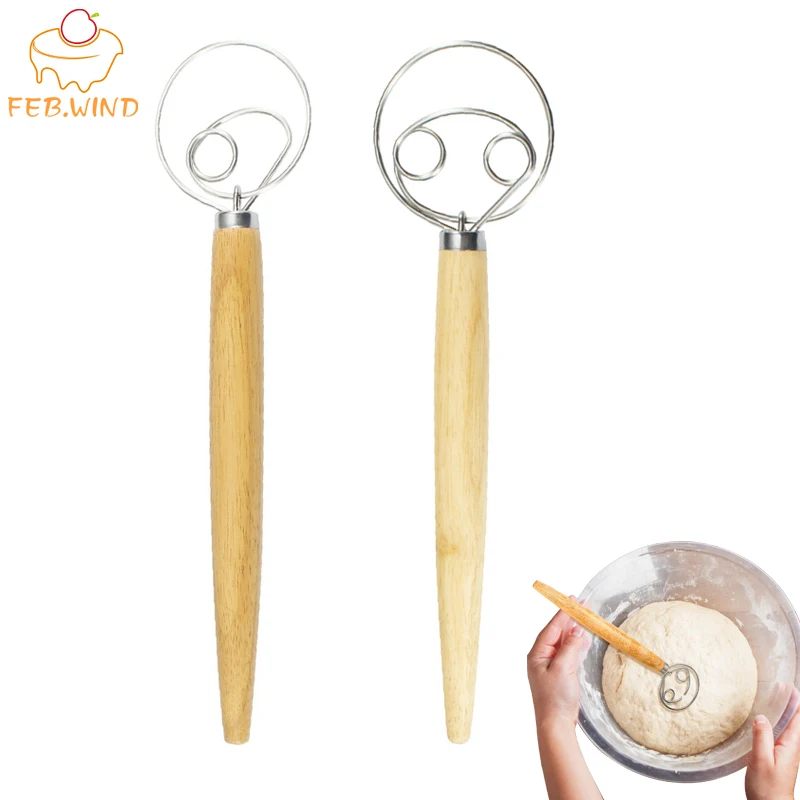 Pastry Tools Best Wooden Hand Danish Dough Whisk For Cooking Stainless Steel Dutch Dough Whisk Bread Dough Whisks 103