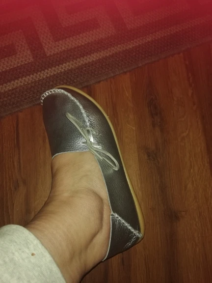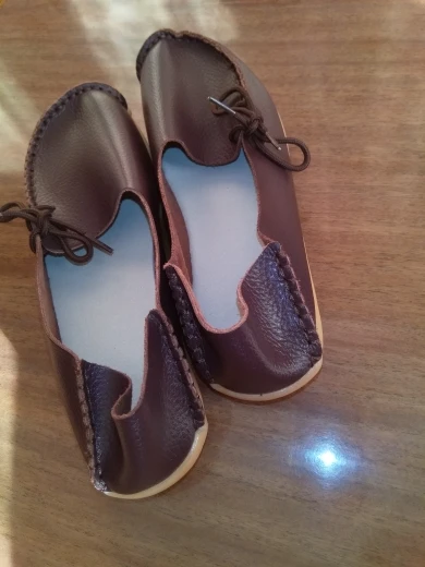 С размером ошиблась, писали что маломерят . заказала на размер больше , буду надеяться что не будут спадывать.Мокасины мягкие , кожа , подошва пружинит при ходьбе.