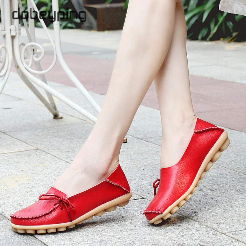 Мокасины женские, из натуральной кожи, без застежки, с бантиком, размер 35-44, осень 2019