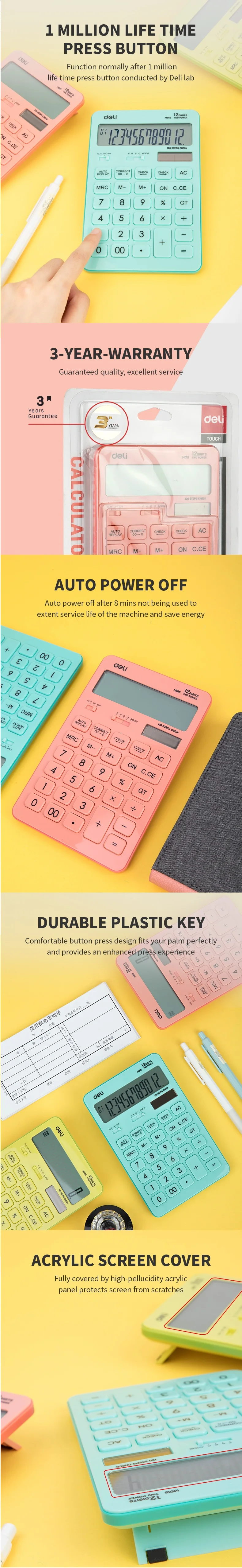 Калькулятор DELI EM015, пластиковый, 12 цифр, 120 шагов, с двойным дисплеем на солнечной батарее