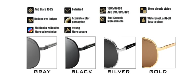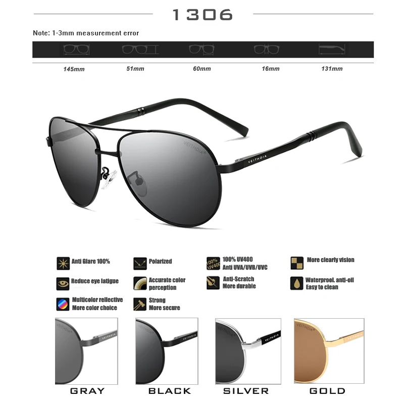 Мужские солнцезащитные очки VEITHDIA, винтажные алюминиевые Поляризационные солнечные очки с поляризационными линзами UV400, с защитой от ультрафиолета, для вождения, 1306