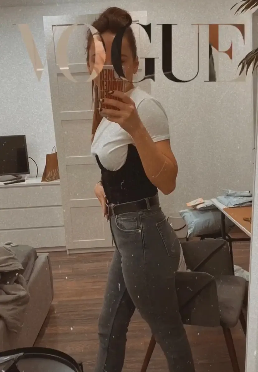 Быстрая доставка , заказала размер L, чуть великоват, наверное подошёл бы M ,хотя с просторной рубашкой или на тонкий джемпер норм. (при стирке линяет ) Мои размеры- талия 72 см. объем под грудью 74 см. объм груди 84 В целом нравится.