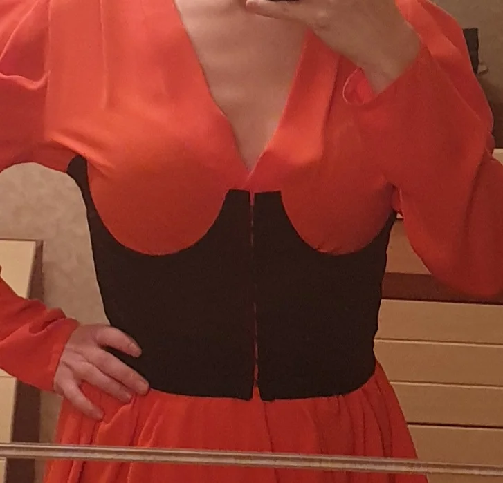 Очень довольна заказом. Классная вещица. В Москву пришёл быстро. На талию 58 и объём под грудью 69 большой, буду ушивать.