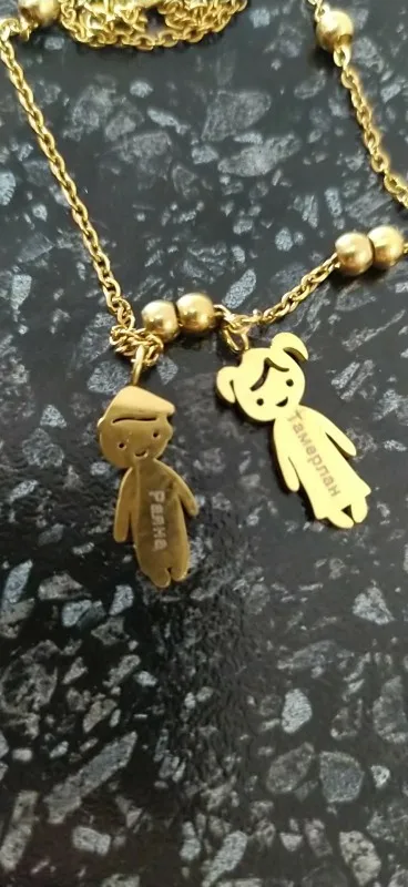 Страна: IL Metal Color: 1 Boy 1 Girl Main Stone Color: gold color Length: engrave name Доставка: Seller's Shipping Method 03.01.2021
