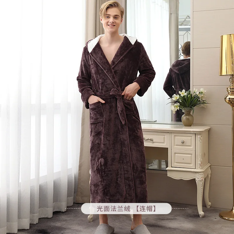 Осенне-зимние фланелевые халаты для мужчин, двухслойный Халат с кап...
