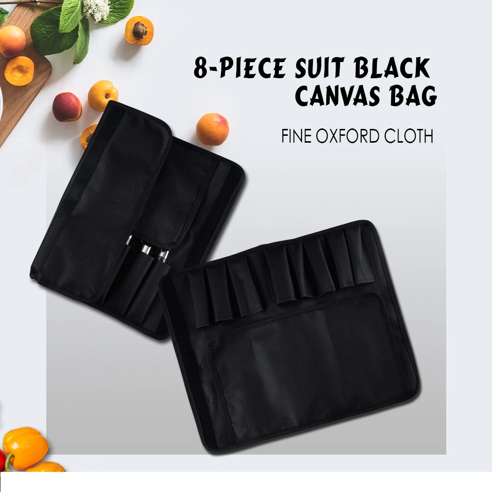 Цвет: черный Вес: 155 г Материал: Оксфордский холст Размер складывания: 145 мм x 370 мм Размер в разложенном виде: 449 мм x 370 мм Применение: 8 карманов для ножа до 8 дюймов Товар: сумка для поварских ножей, сумка-валик, рулонная сумка, сумка-чехол для переноски, органайзер для хранения ножей