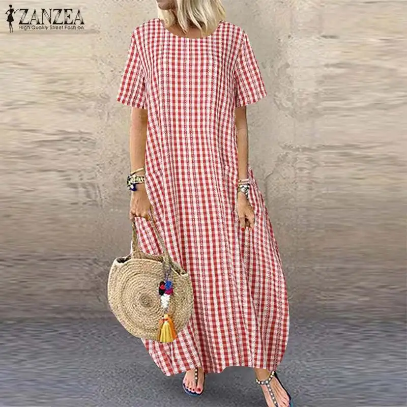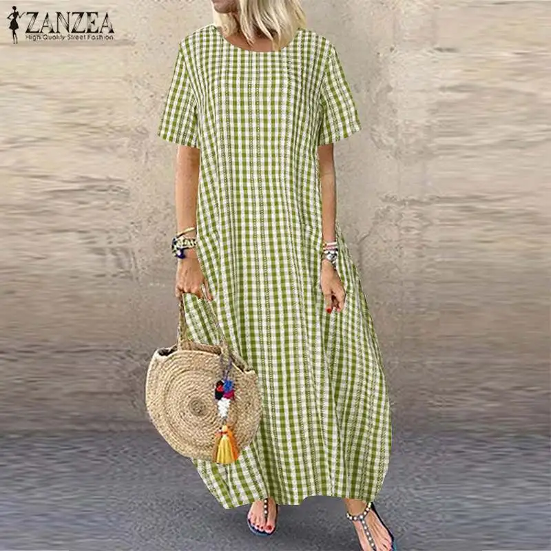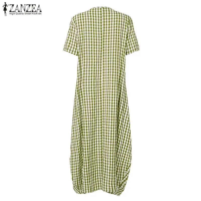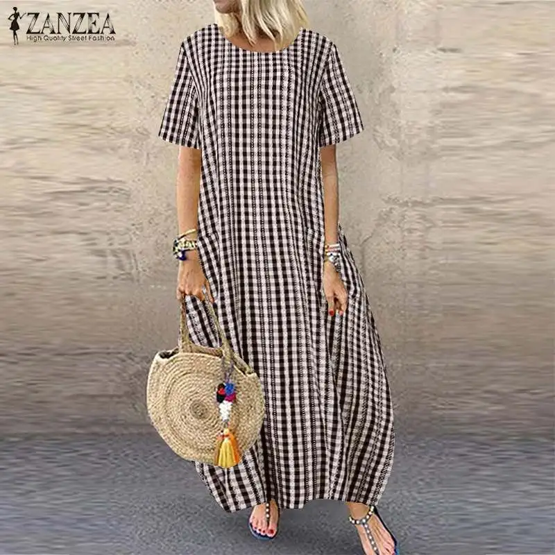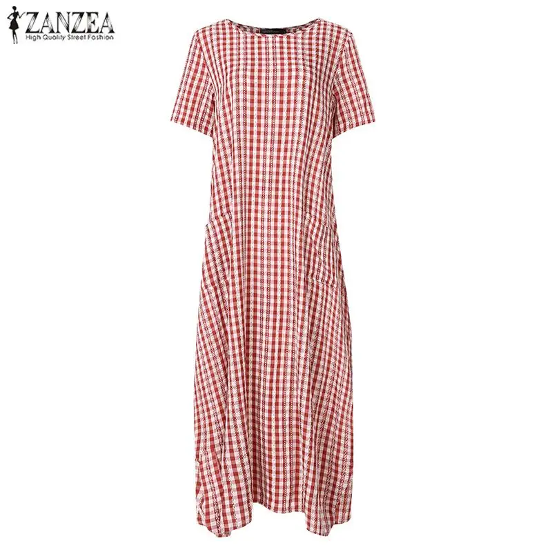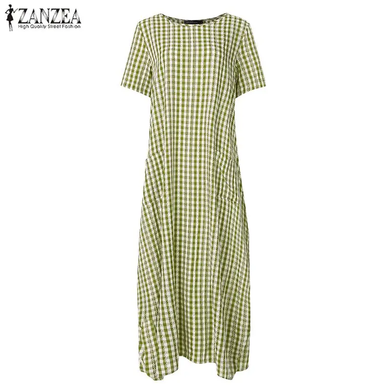 Платье ZANZEA женское клетчатое в клетку, повседневный длинный сарафан в стиле оверсайз с карманами, богемная туника, лето 2021