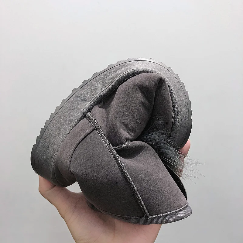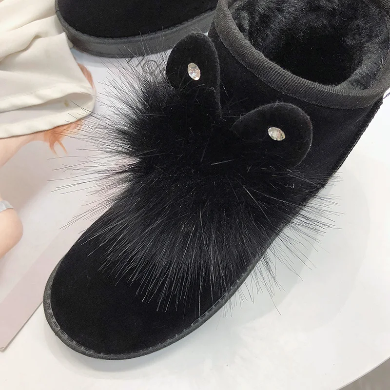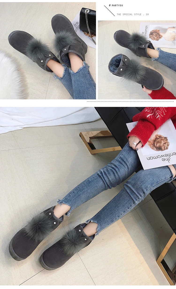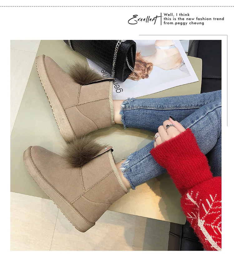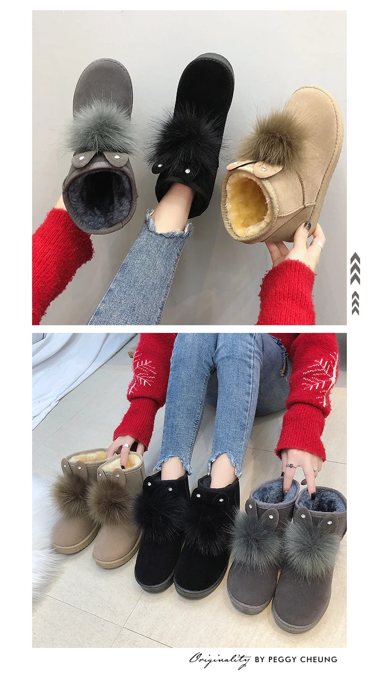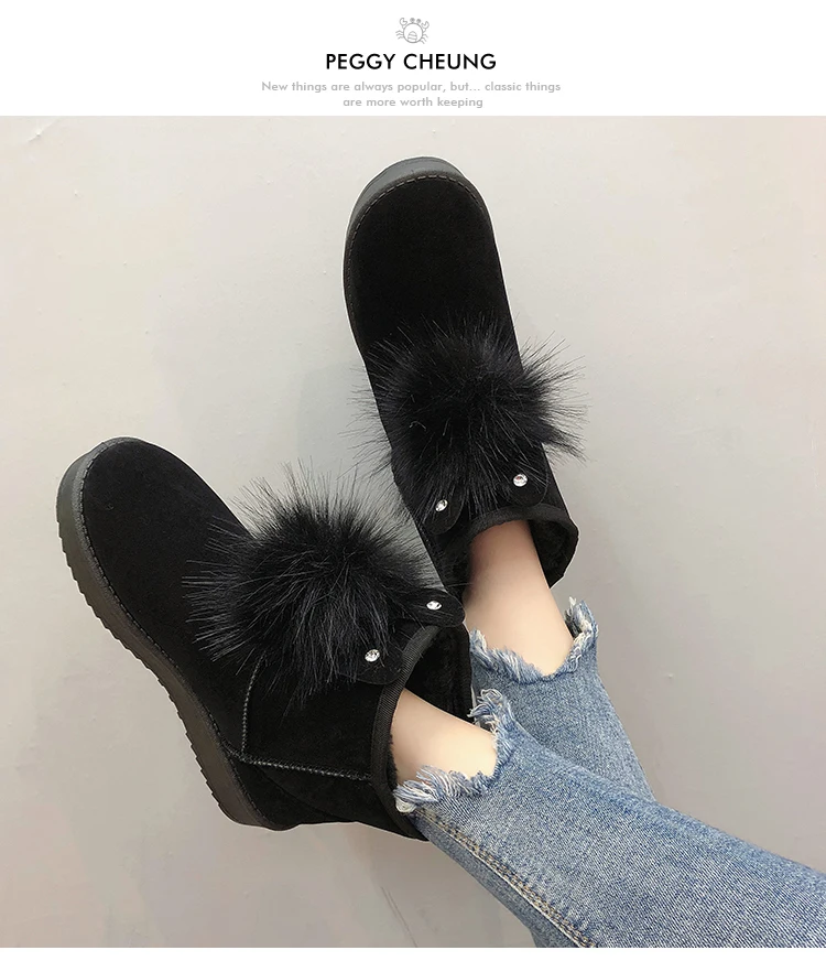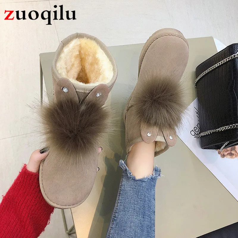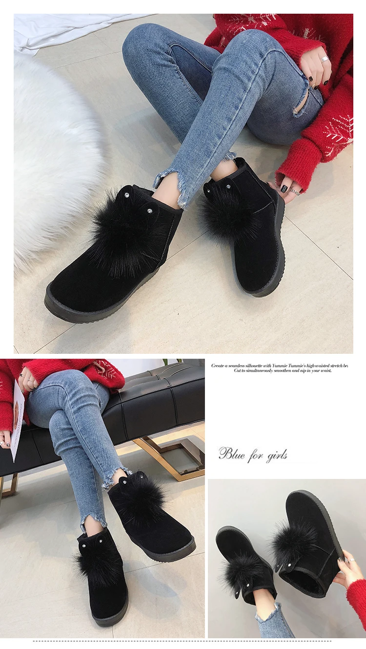 Зимние сапоги 2019 г. Теплые женские сапоги на плоской подошве на платформе, зимняя обувь ботинки с помпонами из меха кролика обувь для студентов Нескользящие хлопковые сапоги