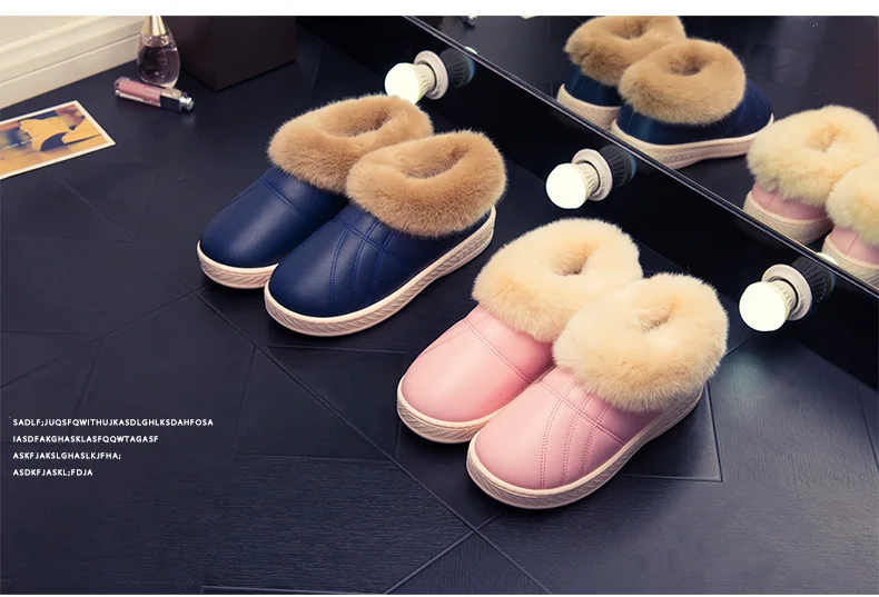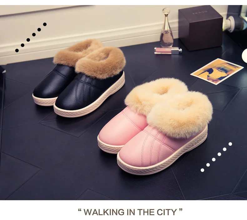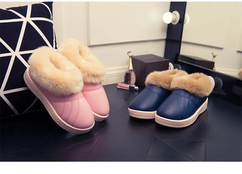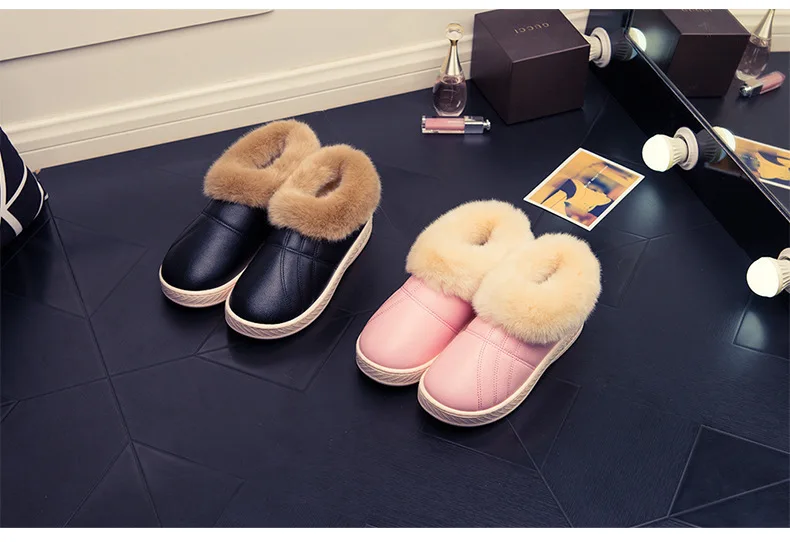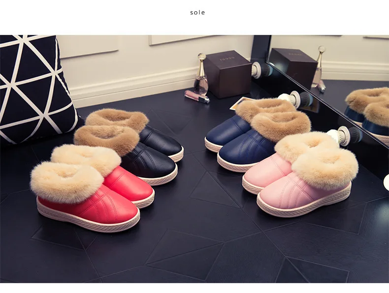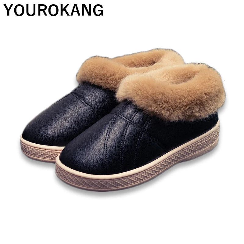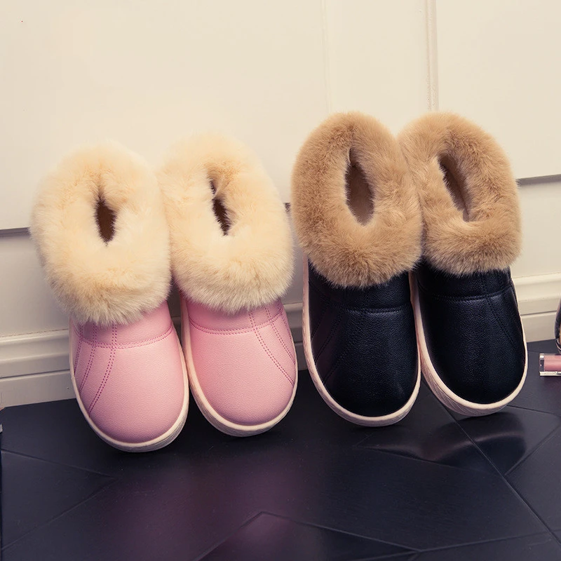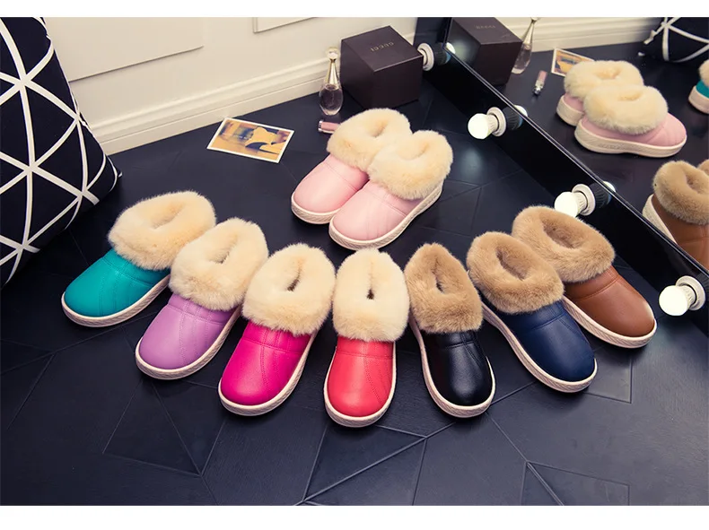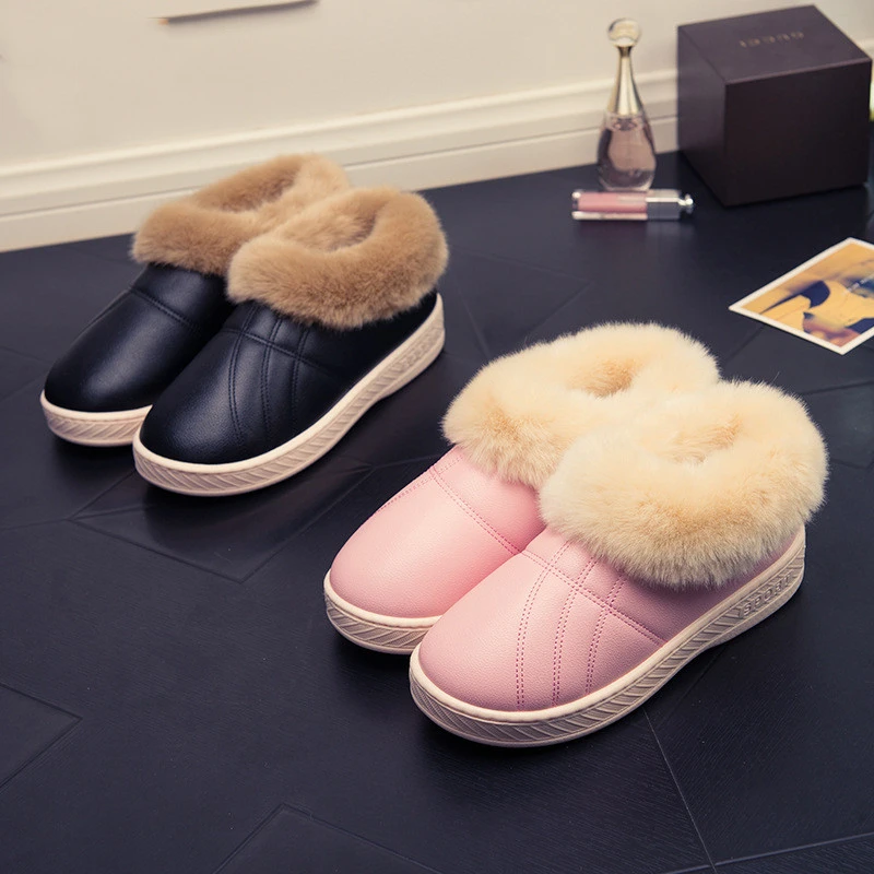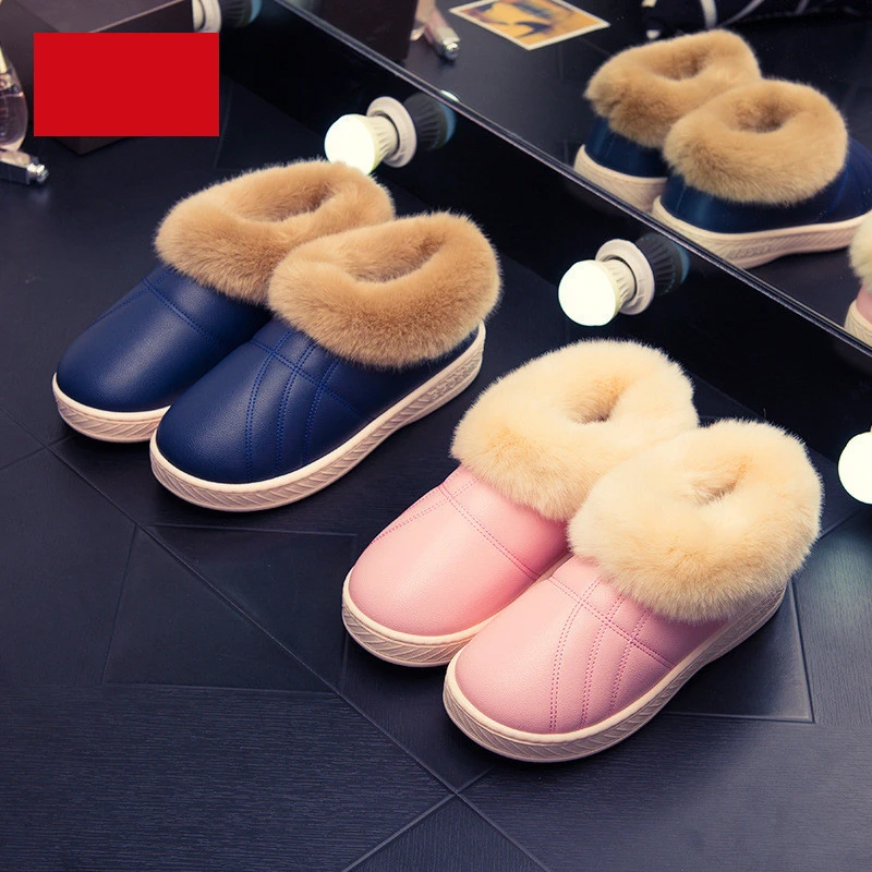 Зимняя мужская обувь; Теплые домашние тапочки; Домашние меховые хлопковые тапочки для пар; Мягкие Водонепроницаемые плюшевые зимние ботинки унисекс