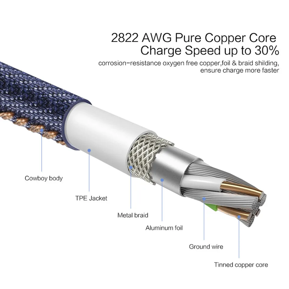 Кабель Micro USB Type-C для быстрой зарядки, плетеный провод из денима для Samsung S8, Xiaomi, Huawei plus