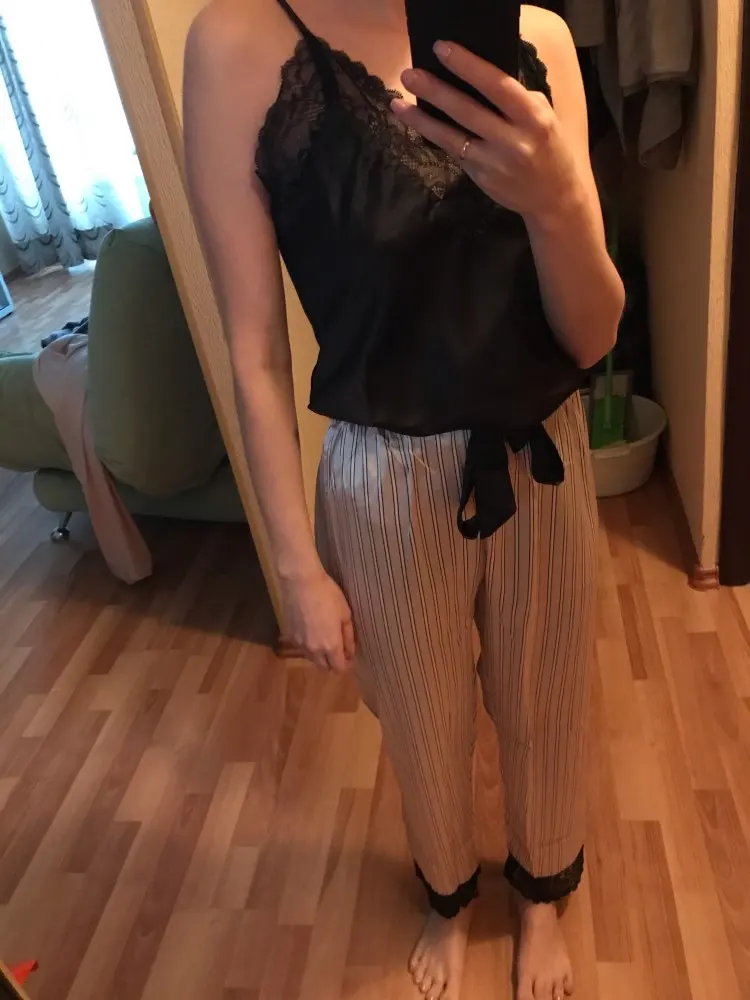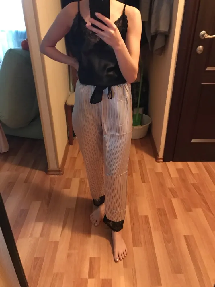 Для своей цены пижама неоправдано дорогая! Швы не ровно просторные и ткань очень электрезуется. На маленький рост не подойдут штаны. У меня рост 148 см. Думала обрежу кружево и будет отлично, но нет, стык не ровно прошить и выглядит это не красиво. Майку оставлю, штаны в мусорку.