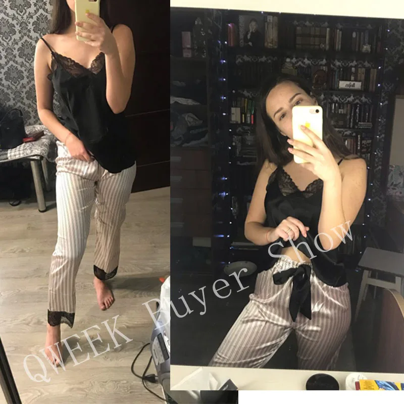Домашняя одежда QWEEK, шелковые пижамы для женщин, 2 предмета, одежда для отдыха, 2020 пижамы, летняя Пижама, атласная Женская пижама на тонких бретельках, сексуальное кружево