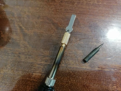 у паяльника пришлось выставить 480 градусов чтобы тепло до кончика лезвия во время работы доходило в нужном объёме