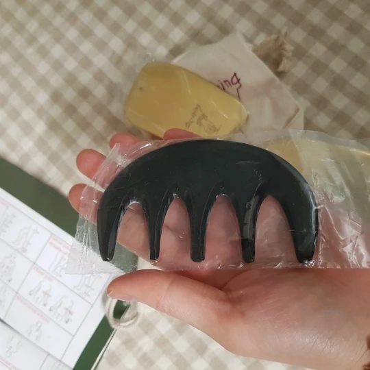 Доставка очень быстрая. Я не эксперт, не могу сказать, на самом деле гребень из рога быка или нет, похоже на пластмассу. Брала за бонусы. Спасибо!