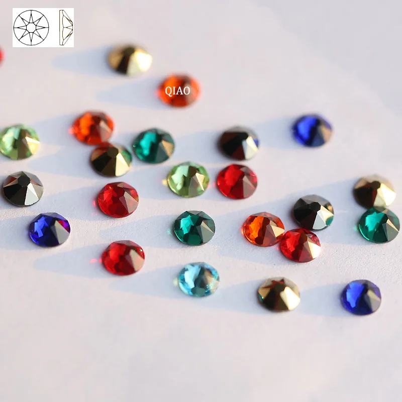 QIAO SS20 (8 большой + 8 маленький) Новые граненые грани Горячая обратная сторона Высокое качество утюжок на горячей фиксации стильные Стразы для одежды, 1440 шт.