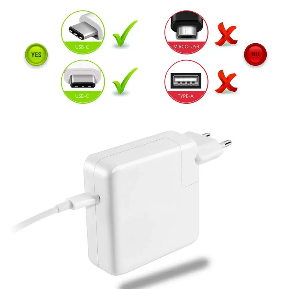 Адаптер питания 87 Вт USB-C Type-C подходит для MacBook Pro, 15 дюймов, 13 дюймов с Thunderbolt 3 (приблизительно к кабелю, входит в комплект), шнур питания
