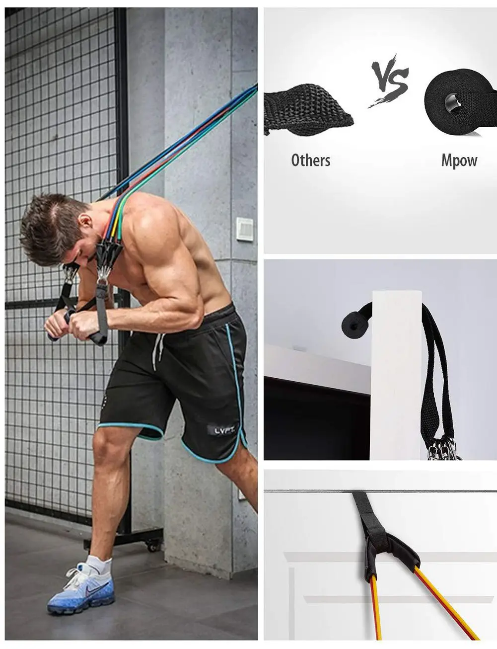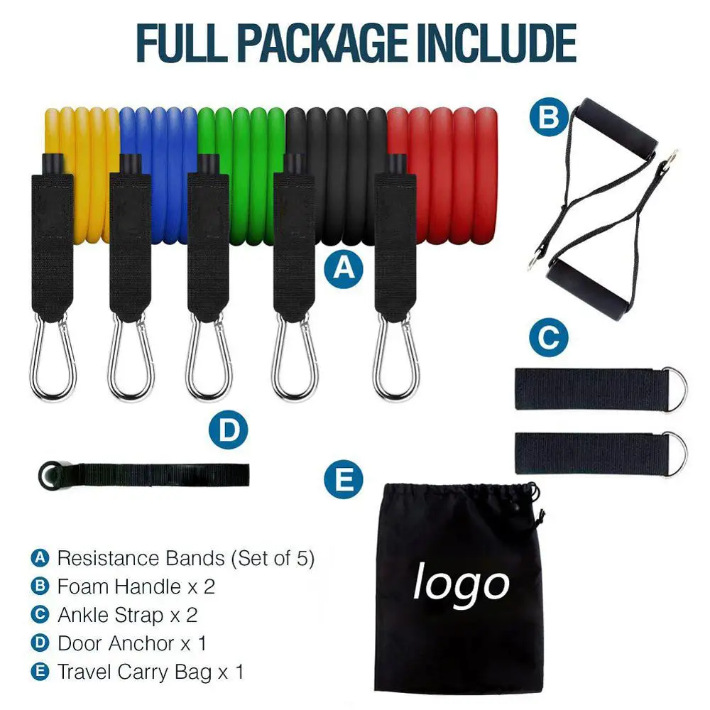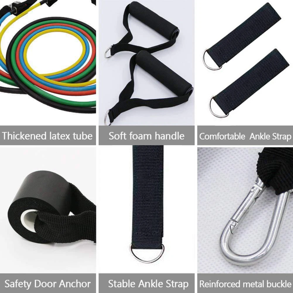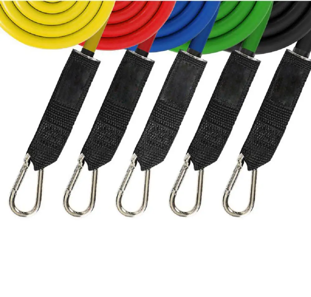 Технические характеристики:Цвет: 5 видов цветов в комплектеМатериал: латексДиапазон мощности: 10 ~ 100 фунтовОсобенности:1. Эспандеры изготовлены из латексных труб с большой эластичностью и хорошей прочностью.2. Они легкие, портативные и компактные тренажеры.3. Предназначен для эффективного наращивания мышечной силы и тонуса тела.4. Прочные мягкие ручки из пенопласта с зажимами из цинкового сплава и d-образным кольцом идеально подходят для йоги, ABS, тренировки.5. Разный уровень сопротивления от 10 фунтов до 30 фунтов для размещения для уровней силовой тренировки6. Эти трубки имеют 5 уровней сопротивления и могут использоваться 1, 2, 3, 4 или все 5 одновременно. Пакет включает в себя:5 x устойчивы полос2 x поролоновые ручки2 x с ремешком на щиколотке1 дверное крепление1 x дорожная сумка для переноски