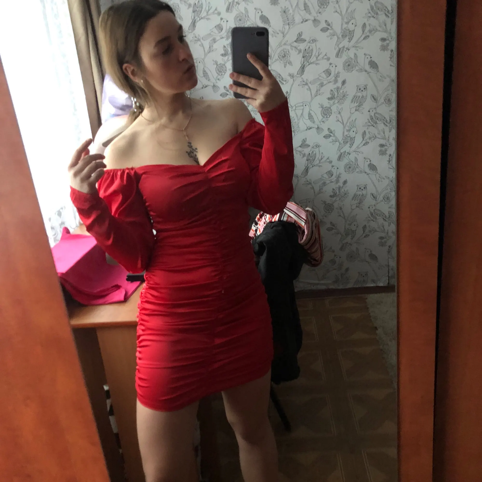 Платье выглядит не так как на фото, а так как в отзывах. Цвет ярко красный, а не благородно алый. На рост 173 взяла размер м, из за того, что платье на резинке внутри и присборенно, то не является коротким. Можно опустить ниже, или собрать повыше. В целом неплохо за свои деньги. Нареканий никаких нет.