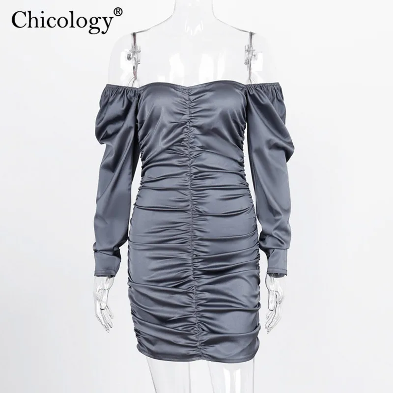 Chicology с открытыми плечами с длинным рукавом Элегантная Дамская мини платье 2020 осенне-зимние вечерние Клубные на Рождество или день рождения, сексуальная одежда