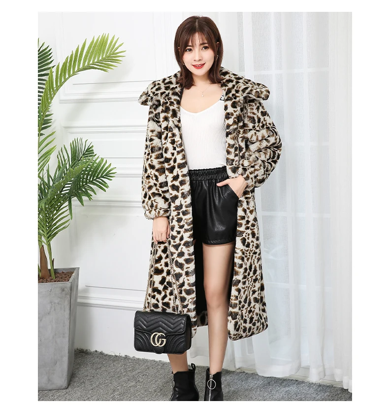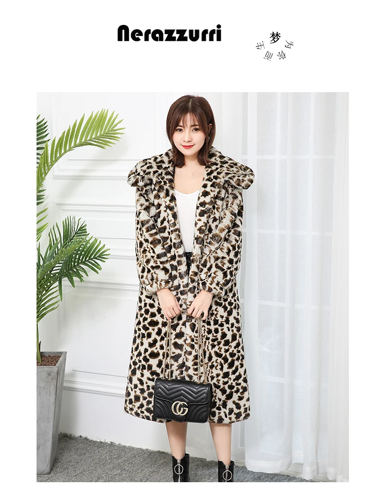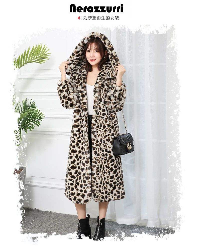NerazzurriВысококачественная Толстая леопардовая куртка из искусственного меха для женщин с капюшоном и леопардовым принтом, пушистое пальто теплое зима с мехом, длинная шуба из искусственного меха 2021 2022
