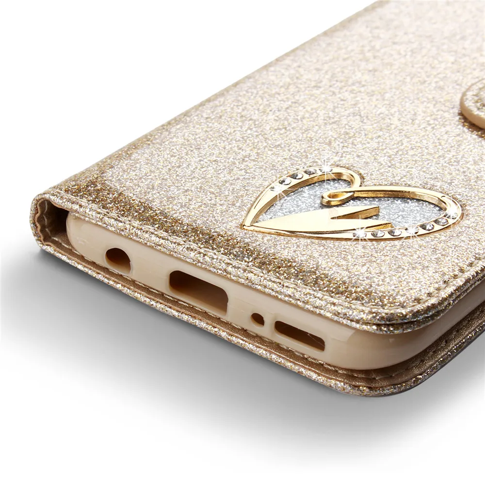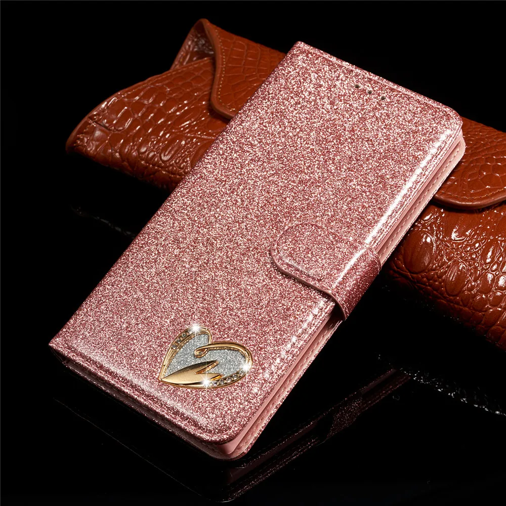 Блестящий чехол для Huawei P30 P20 Lite кожаный чехол-книжка Love J...