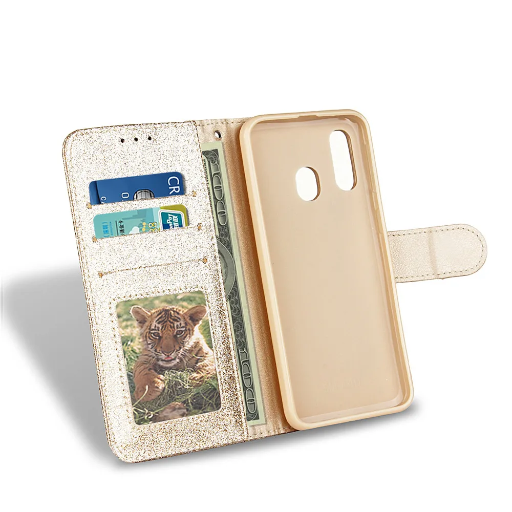 Чехол-книжка для Samsung Galaxy A40, кожаный, с блестками, чехол-кн...