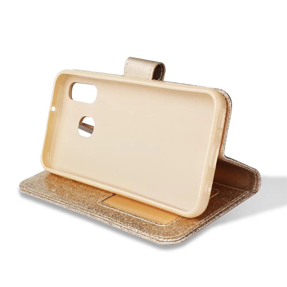 Блестящий блестящий чехол для Samsung Galaxy A5 2018, кожаный флип-...