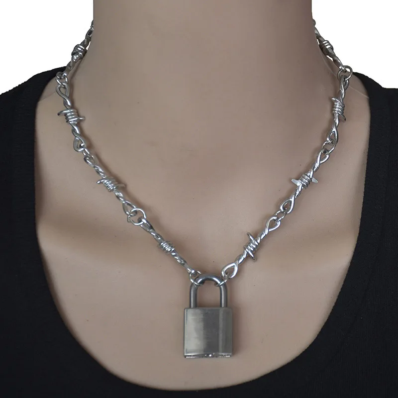 Железный мужской чокер с подвеской в стиле панк и унисекс, колье с висячим замком в стиле хип-хоп, уличная одежда, ювелирное изделие