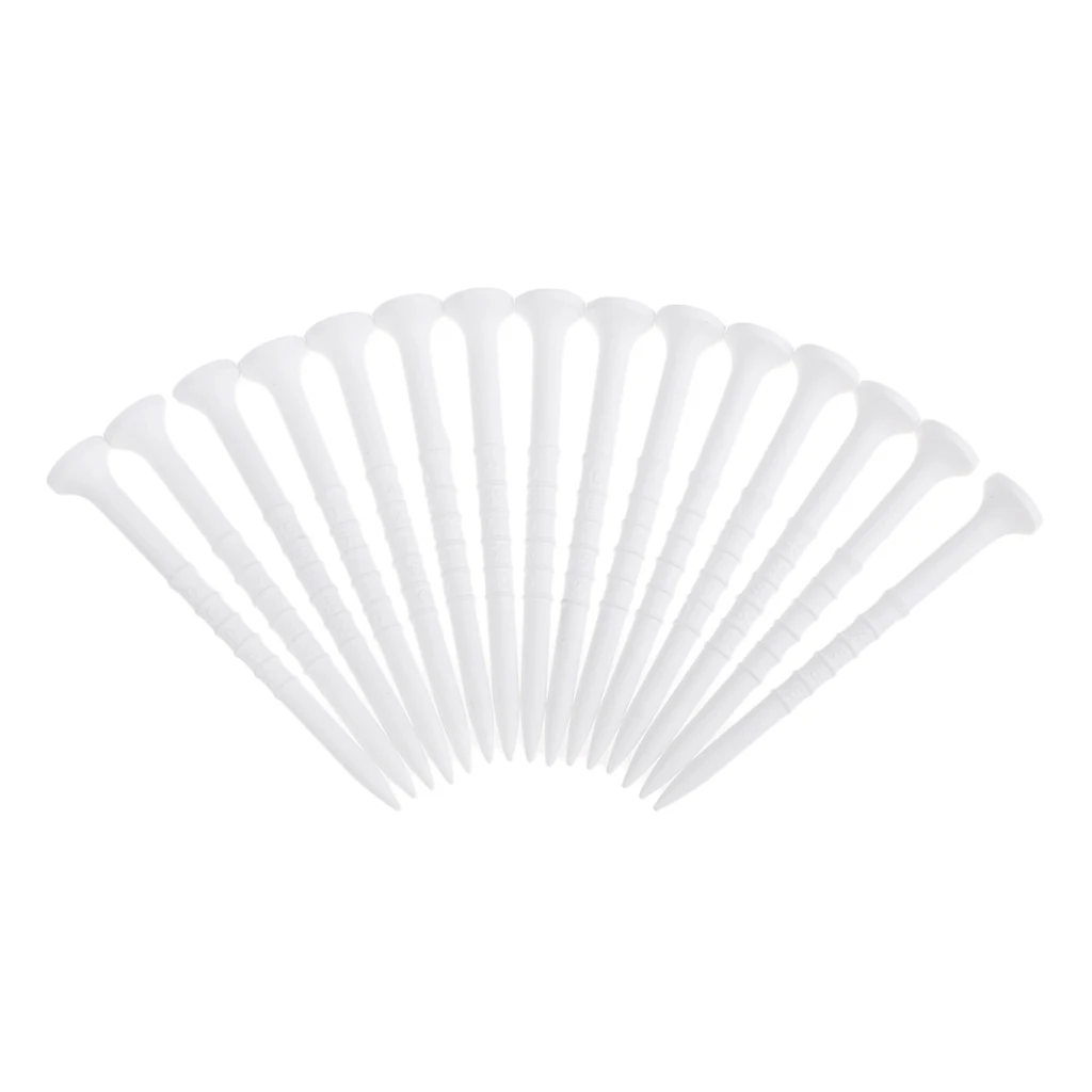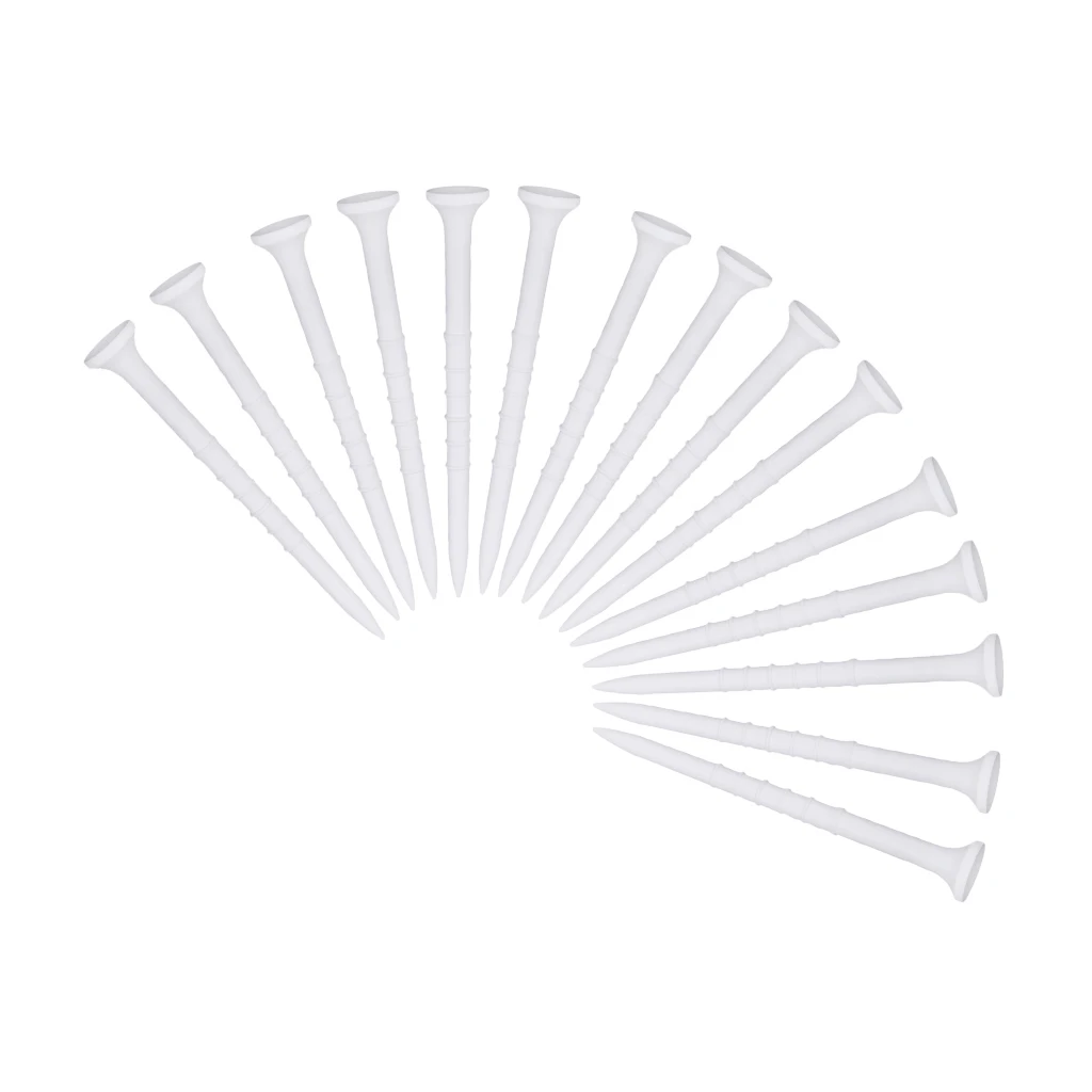 -Набор из 15 прочных пластиковых тройников для гольфа, прочный, легкий и прочный.-Изготовлен из высококачественного пластика, устойчивый к износу, легко вставляется в траву и не легко расстегивается.-Компактный и удобный в переноске, может уменьшить ударопрочность.-Меньшее сопротивление от тройника означает большее расстояние вниз по фарватеру.-Отлично подходит для использования в помещении и на открытом воздухе, для занятий в гольф, для любителей гольфа.