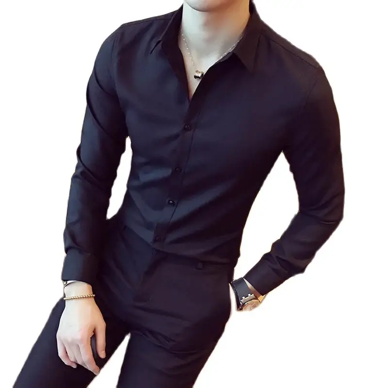 Мужская рубашка из чистого хлопка, с длинным рукавом, повседневная, приталенная, 2021