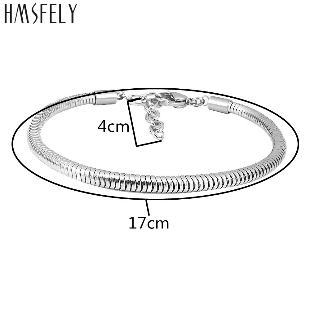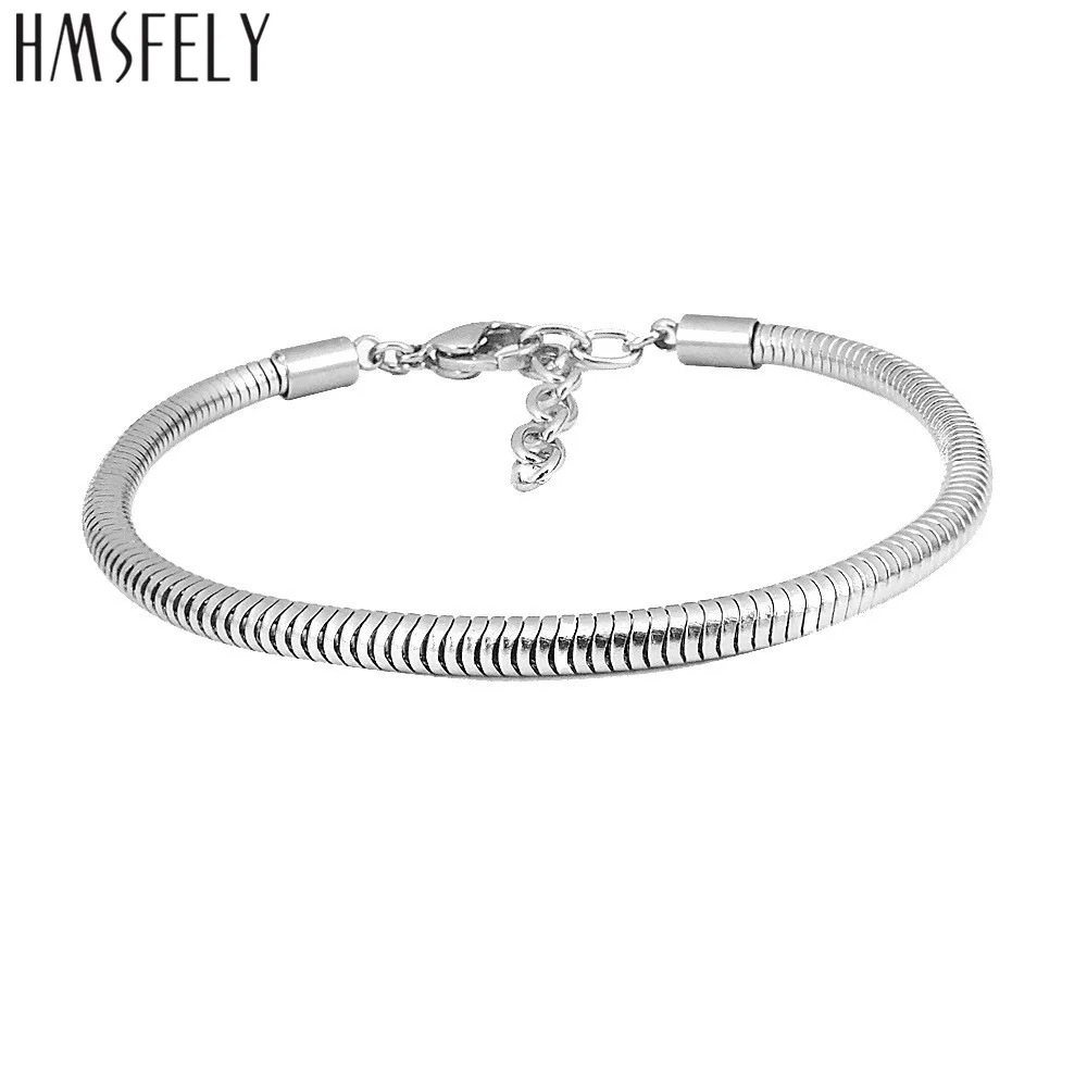 Браслеты HMSFELY 316L из титановой нержавеющей стали, змеиные цепи, браслеты для женщин сделай сам, амулетные браслеты длиной 17 + 4 см, цепи с застежкой-карабином