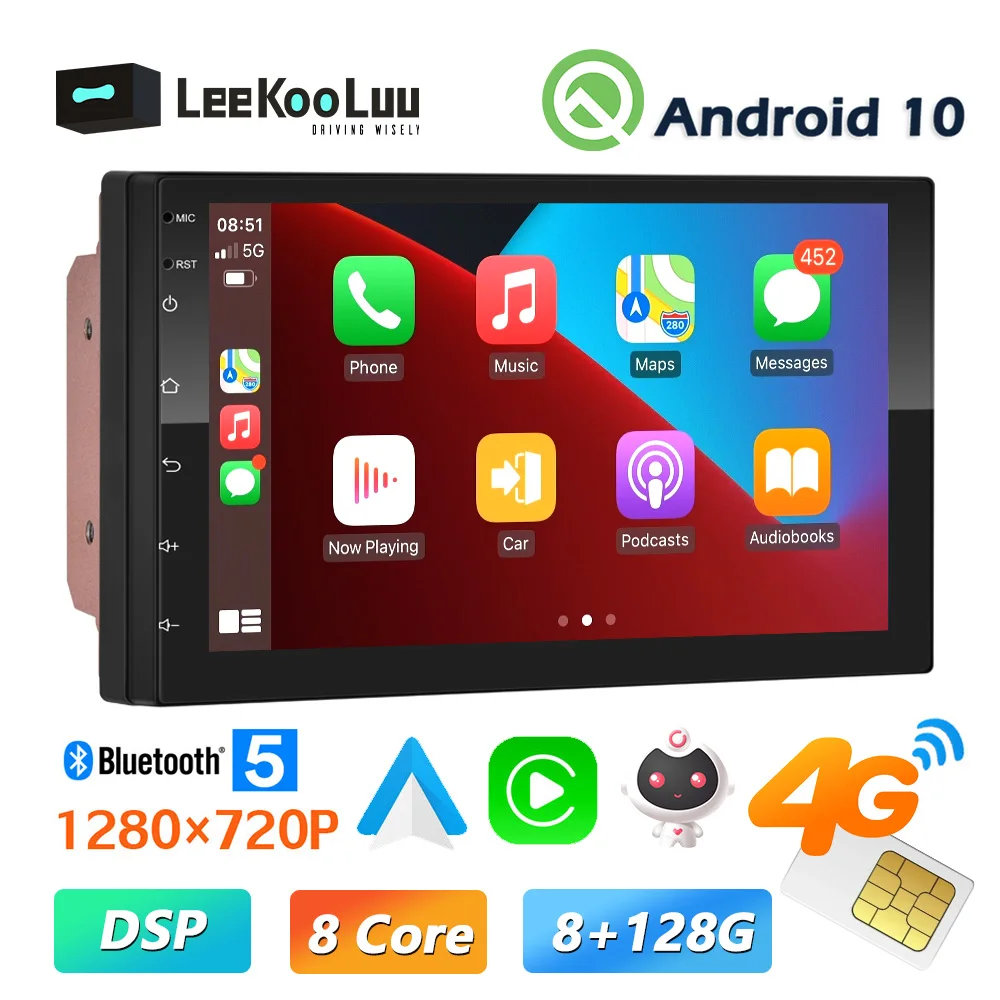 Автомагнитола LeeKooLuu, 2 din, Android, мультимедийный плеер, 7 дюймов, GPS-навигация, Стерео Авторадио, Bluetooth MirrorLink Carplay, 4G, Wi-Fi, DSP