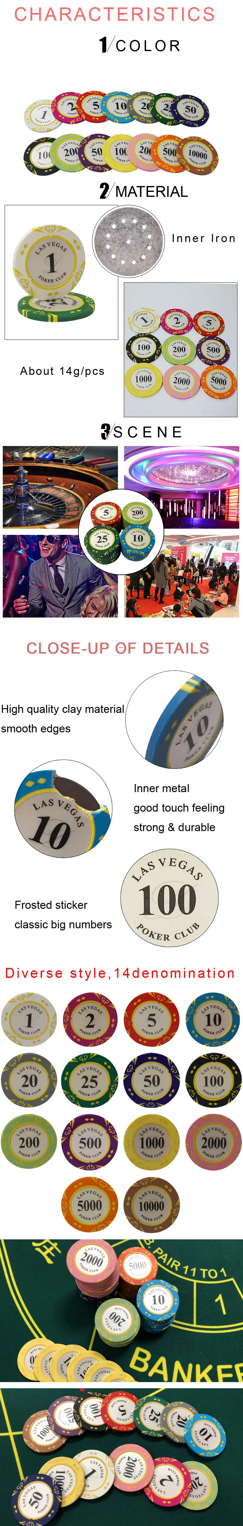 10 шт.компл. 14 г казино Baccarat Корона Лас-Вегаса дизайн глина покер фишки Внутренний Металл с отделкой наклейка