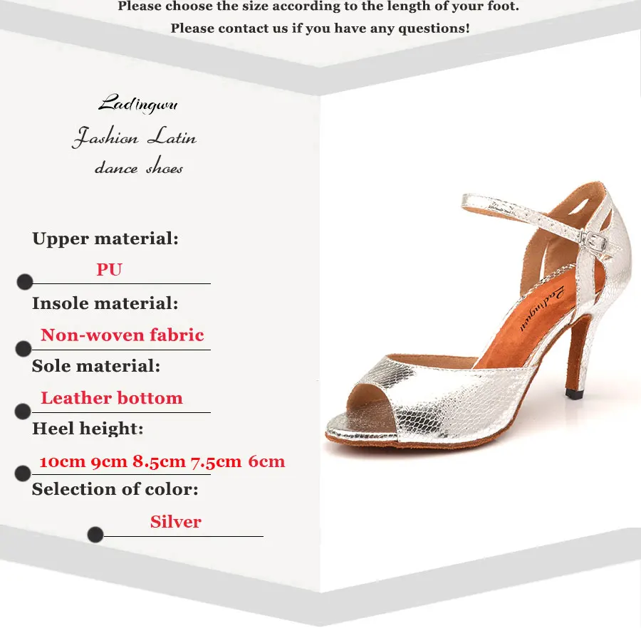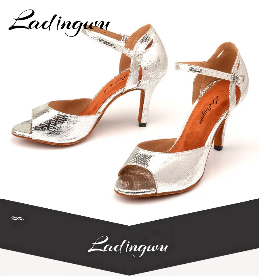 Женские туфли Ladingwu для бальных танцев, сандалии для сальсы, серебристые туфли из искусственной кожи со змеиным плетением для представлений и вечеринок