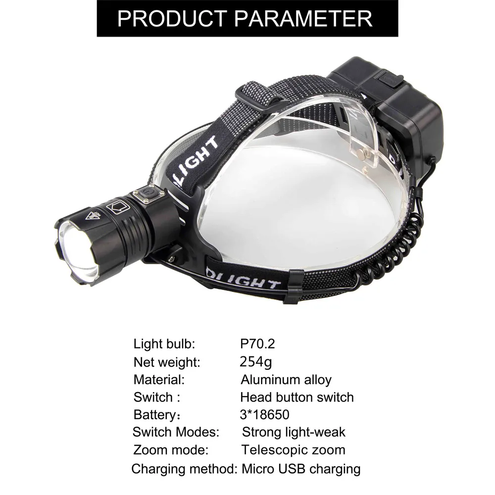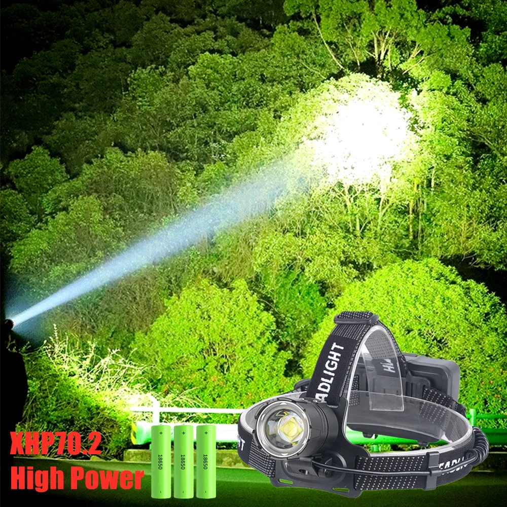 Фонарь налобный XHP70.2 светодиодный Аккумуляторный с зарядкой от USB, 90000 лм