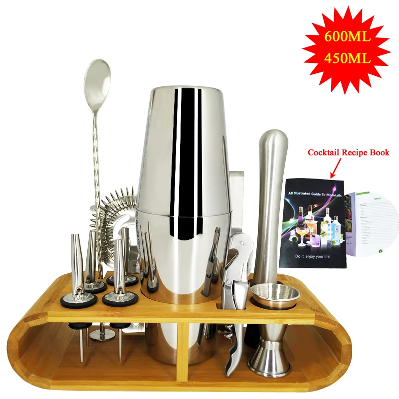 Коктейльный шейкер из высококачественной нержавеющей стали, набор коктейльных шейкеров с деревянной подставкой и книгой для рецептов коктейлей, 1-13 шт.компл.
