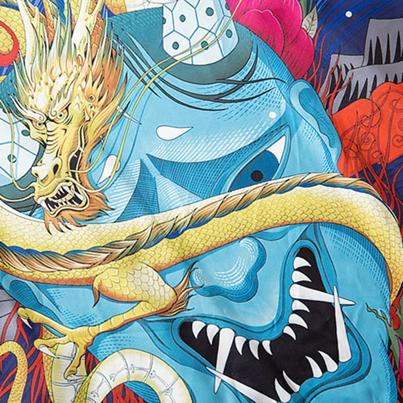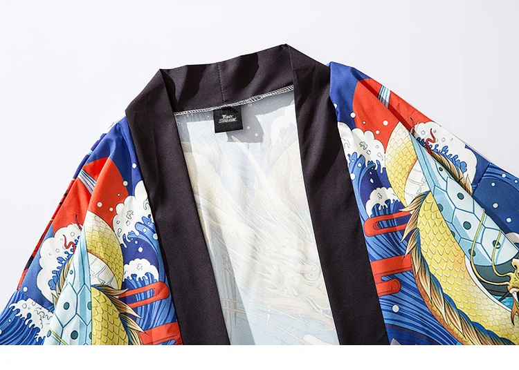 2021, японское кимоно, куртка, морской дракон, дьявол, принт, хип-хоп, мужские куртки в японском стиле, уличная одежда, летняя тонкая одежда Harajuku