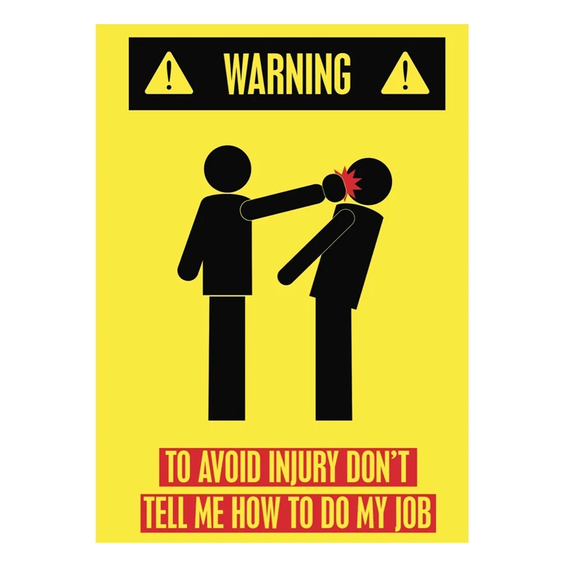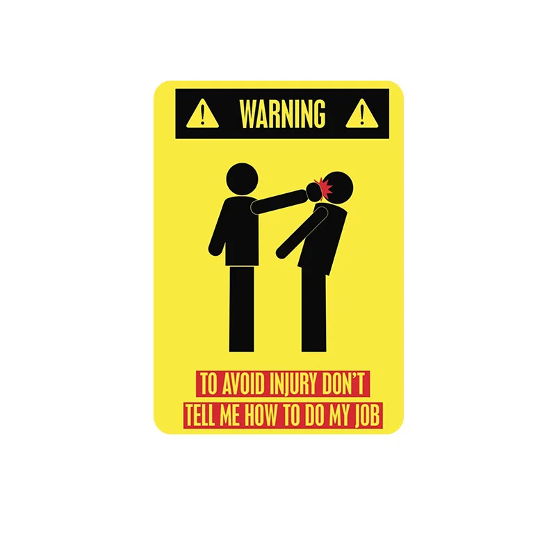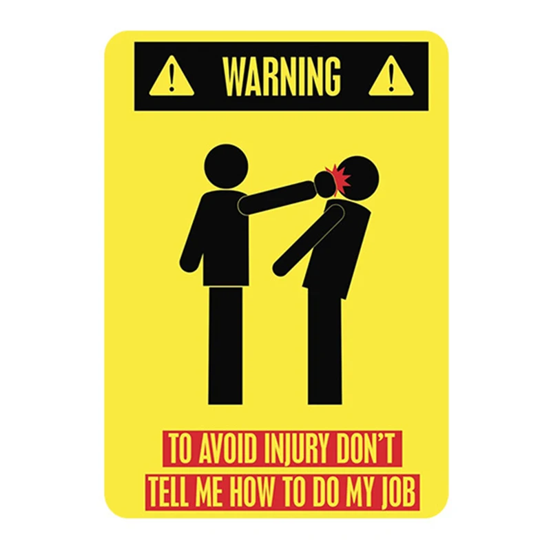 Предупреждение! Чтобы избежать травм, не скажите мне, как сделать свою работу! Ретро жестяные таблички Классические солнечные очки в металлической живописи Классическая гладить изображение